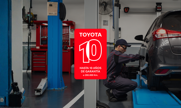 Conscientes de la confianza y alta calidad que depositamos en nuestros vehículos, lanzamos Toyota 10, nuestra garantía de hasta 10 años o 200.000 km. Con cada servicio de mantenimiento que hagas en nuestros concesionarios oficiales, tu cobertura continúa vigente. Sin trámites extra ni costos adicionales.